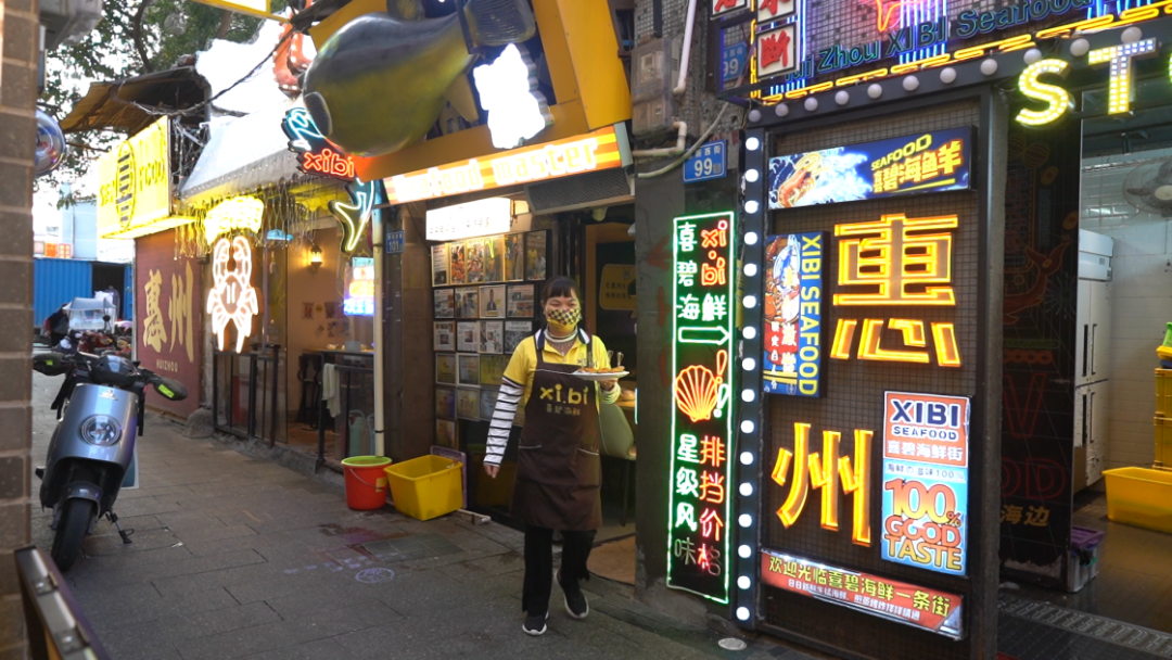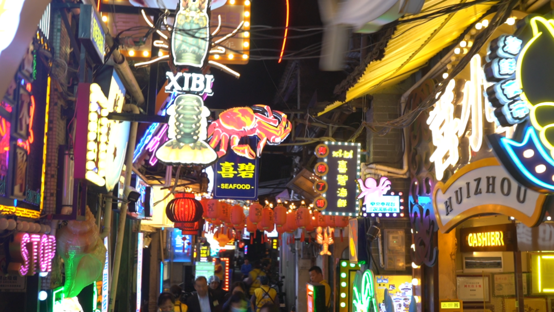 水东街是惠州年轻人的聚集地,青砖白墙的骑楼下,酒吧、饮品店、文创市集等店铺散发着新的活力,也让这里成为“打卡圣地”。