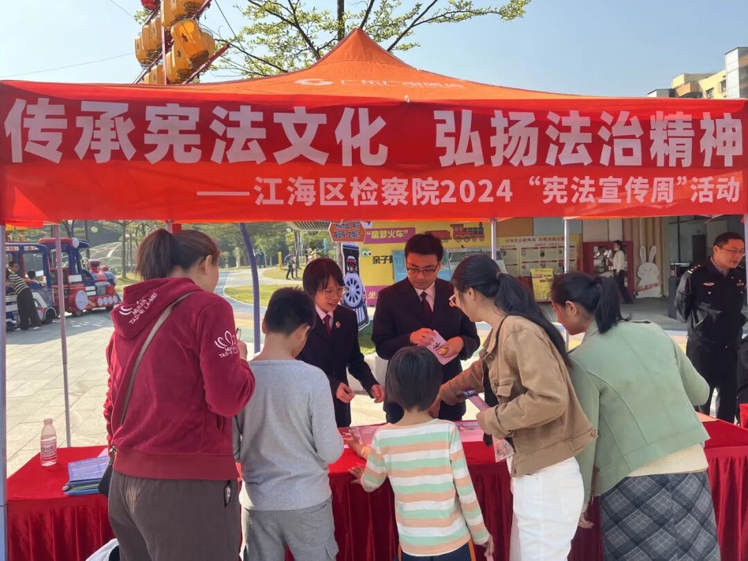 今年12月4日是我国第十一个国家宪法日,宪法宣传周定于12月1日至12月7日开展,主题为“大力弘扬宪法精神,推动进一步全面深化改革”。为进一步加强全社会学宪法、讲宪法的氛围,形成上下联动、共同参与、整体推进的宪法宣传教育格局,12月1日上午,江海区检察院到江门市儿童公园以现场摆摊形式开展宪法知识宣传。