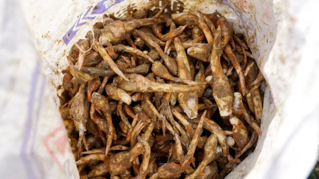 我们上埔村所产的茨菇很粉很香甜,我种植茨菇已经有十几年了,每天一个人大概能采收50斤到60斤左右,主要运到市场进行批发销售。
