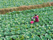 核桃山村蔬菜种植大户赖雄辉今年开垦撂荒地150亩,前后种植了西瓜和包菜,现在包菜迎来了丰收,进入采收销售旺季。一大早他就和家里人一起到田里忙活起来了,除草、摘菜,忙得不亦乐乎。
