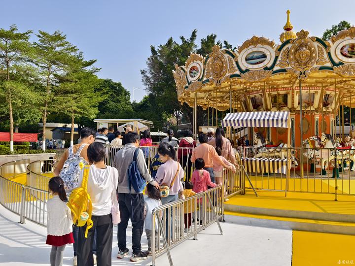 当天上午,阳光明媚,番禺儿童公园内一片欢声笑语。36座旋转木马如同童话世界中的精灵,等待着小朋友们的到来。家长们牵着孩子的手,在围栏外有序地排队验票,期待着与孩子们一同分享这份童年的快乐。 随着工作人员的启动按钮,旋转木马缓缓启动,如梦如幻地旋转起来。小朋友们坐在木马上,脸上洋溢着天真无邪的笑容,仿佛置身于一个充满梦幻与欢乐的世界。家长们则在一旁陪伴着,用手机记录下这温馨美好的瞬间。