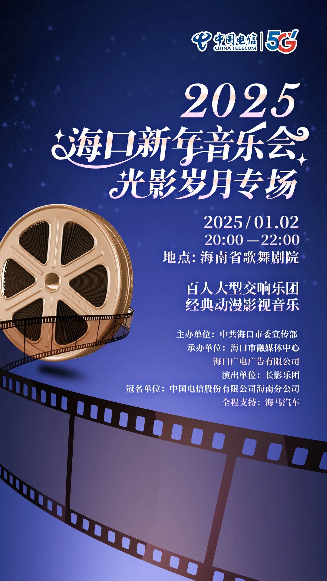 2025海口新年音乐会分为两个场次,首场演出将于2025年1月1日20:00在海南省歌舞剧院拉开帷幕。届时,观众将欣赏到长影乐团带来的精彩交响乐演奏,以及歌唱家的深情演唱。第二场演出则是特别设置的光影岁月专场,将于1月2日20:00在同一地点举行。该专场聚焦经典动漫影视音乐,通过交响乐的形式重新演绎这些耳熟能详的旋律,带领观众重温那些美好的光影岁月。