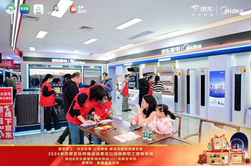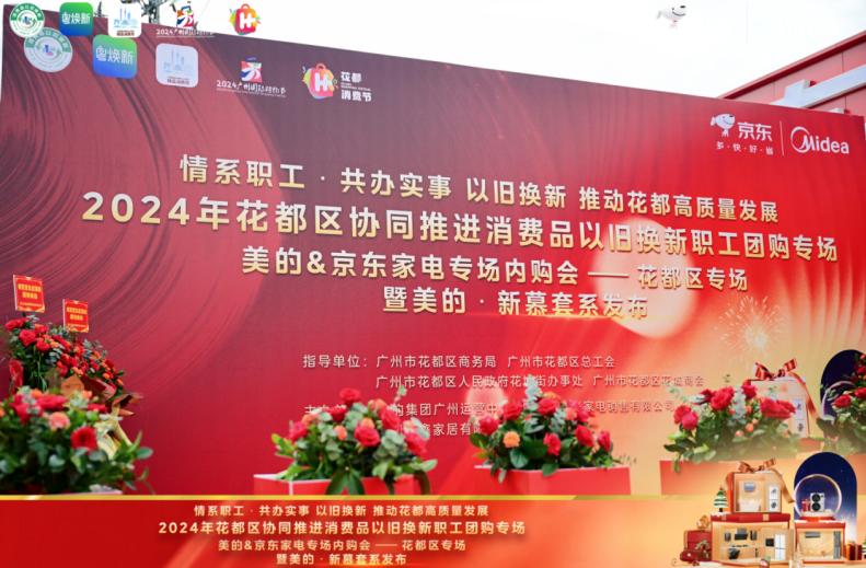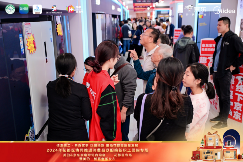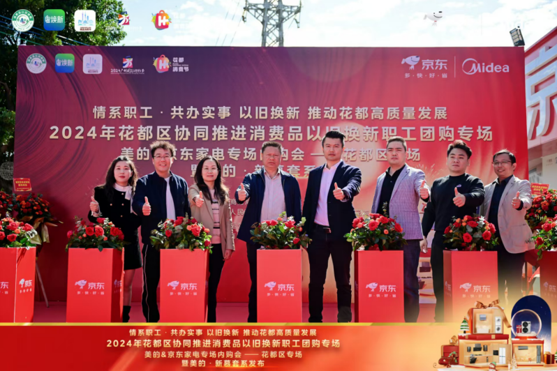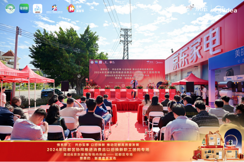 为深入贯彻落实中央、省、市、区关于消费品“以旧换新”的决策部署,进一步释放消费潜力,促进绿色循环经济发展,推动家电、家装厨卫等更多绿色、智能、高品质消费品进入百姓生活,满足我区人民群众美好生活需要,助力“百千万工程”,推动花都区经济高质量发展,在区商务局、区总工会、花城街和花城商会指导下,11月30日上午,“情系职工 共办实事 2024年花都区协同推进消费品以旧换新职工团购专场活动”在花城街京东家电(花城店)正式开启。