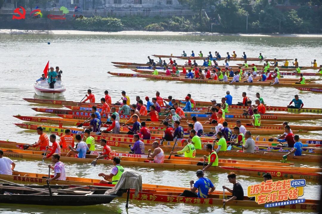 吃饱肚子,散步到河岸边看百龙竞渡,来自龙江镇内外66支精英龙舟队伍蓄势待发,上演水上版“速度与激情”。