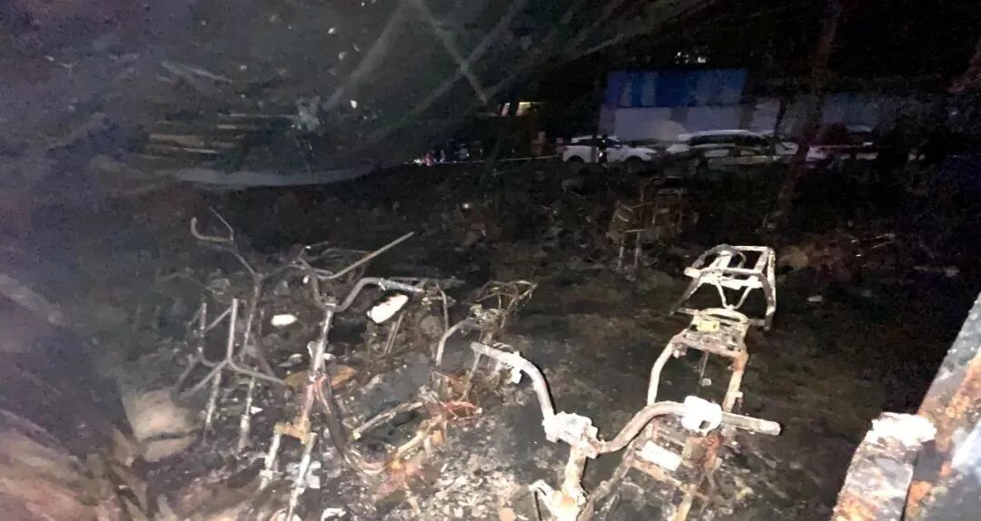数十辆电动自行车被烧毁