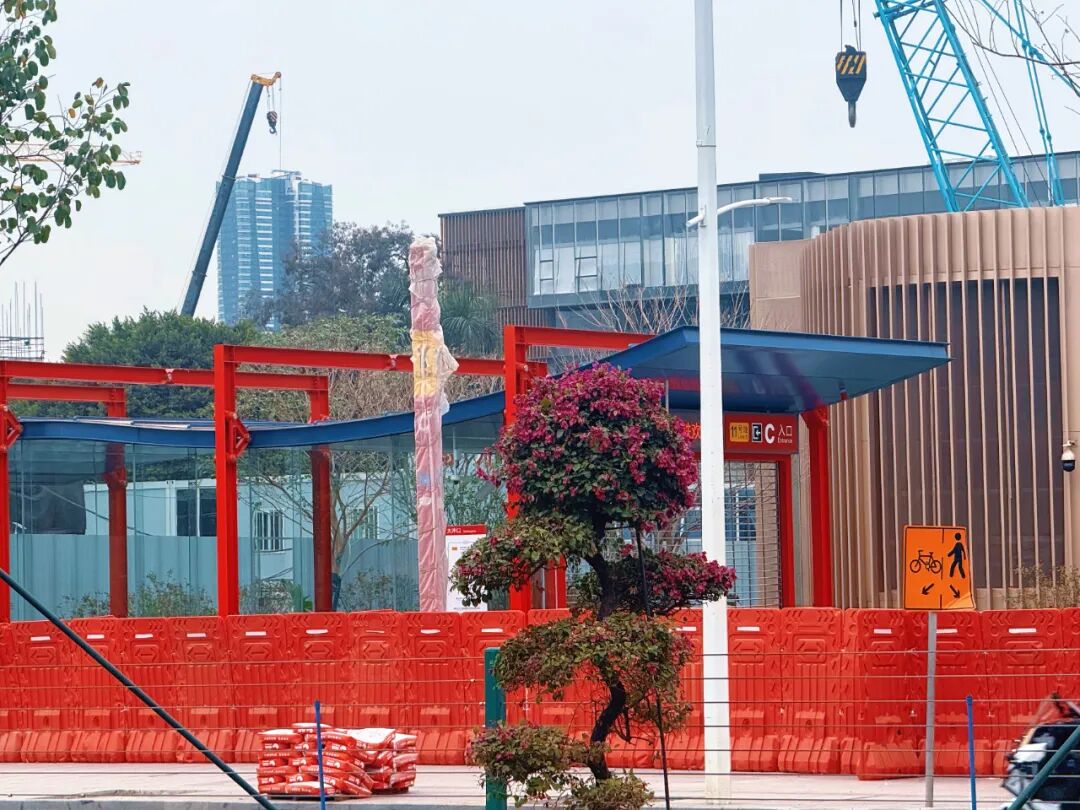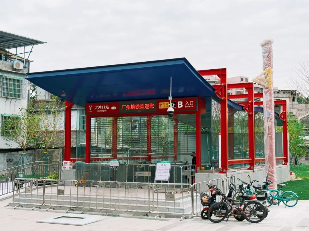 大冲口站位于芳村大道东,呈南北走向,设有4个出入口,小荔走访看到,当前,大冲口站B出口周边围挡已经全部拆除,靠近聚龙湾片区的C出口还在建设中,站内外都有工作人员正在作业。