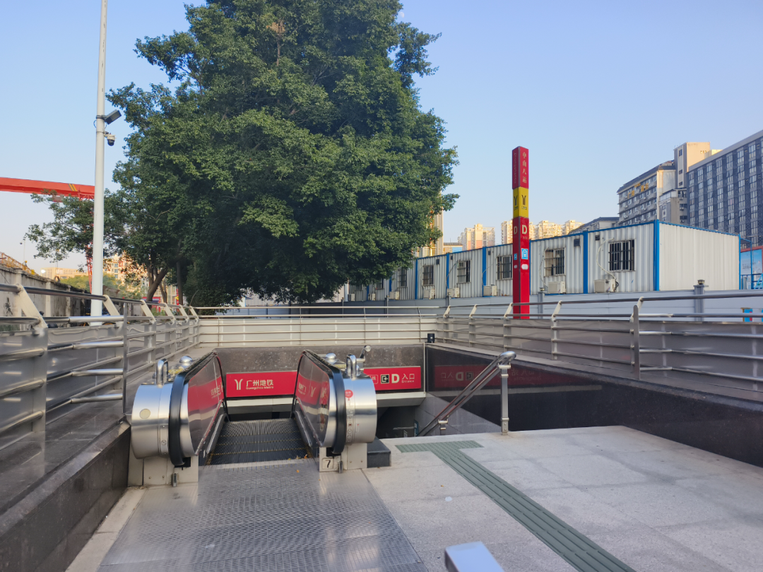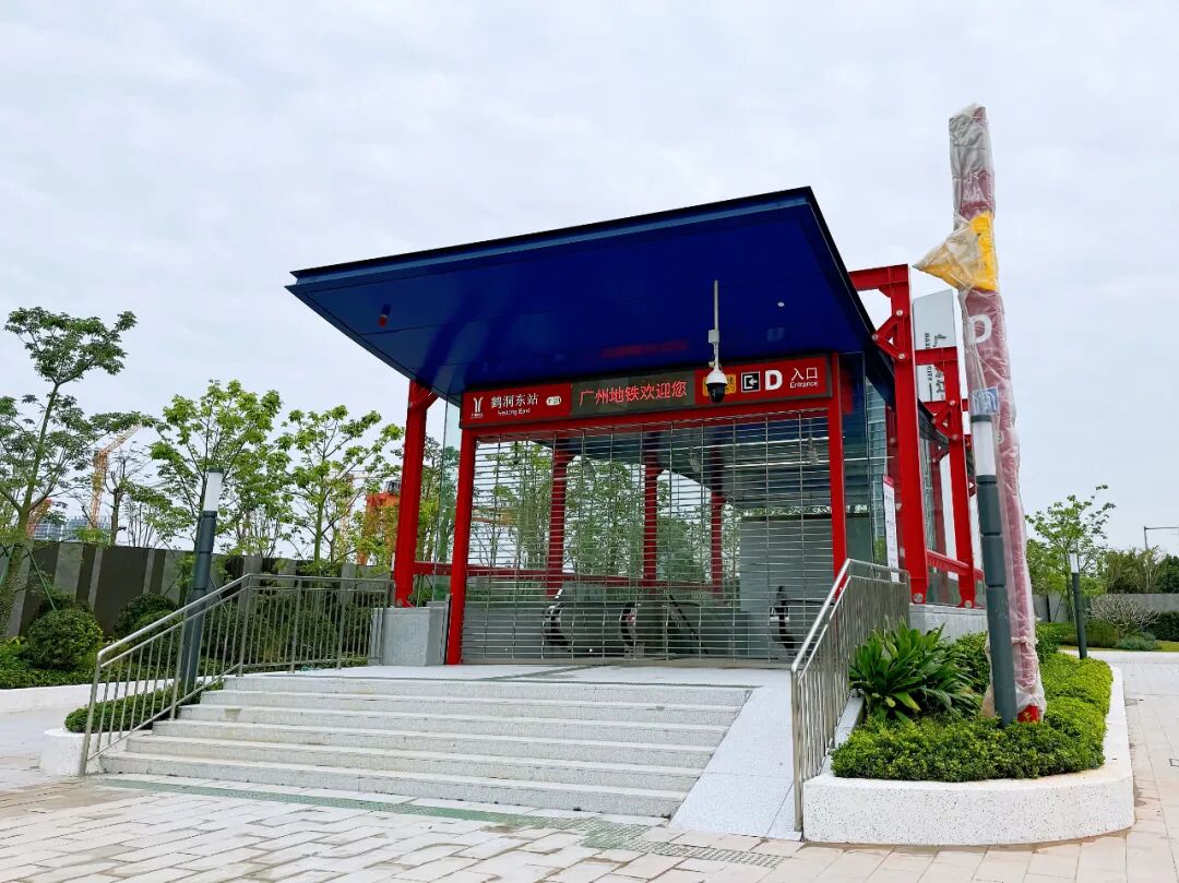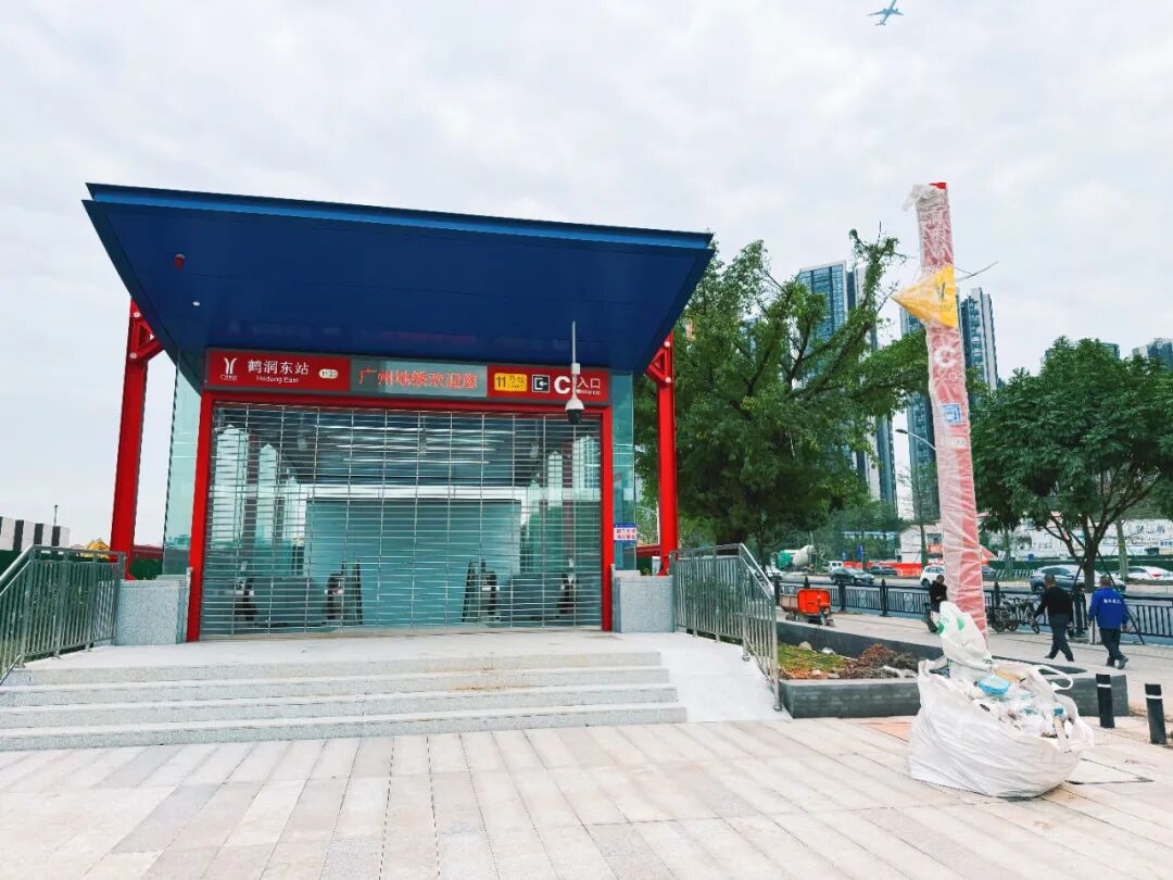 鹤洞东站位于芳村大道南与荔勤北路交汇处,共有3个出入口,车站东侧为广船滨江公园,西侧为鹤洞站,西南侧为广州广钢中央公园。小荔走访看到,当前,鹤洞东站C、D出口周边围挡已经全部拆除,该站不仅填补了广钢新城片区的地铁空白,更将为周边居民带来极大的出行便利。
