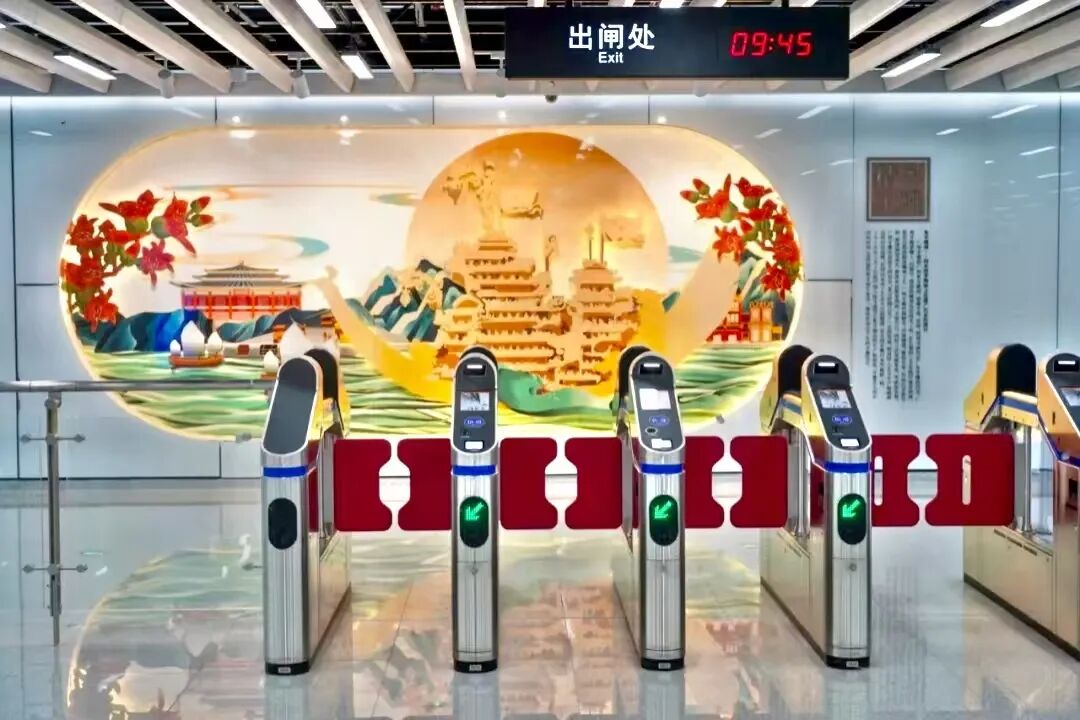 值得一提的是,芳村站不仅是地铁网络中的重要节点,更是五大非遗重点站之一。其文化主题被精心设定为“粤绣锦华”,站厅橱窗内重点展示了中国四大名绣之一的广绣,以及蕴含岭南传统文化特色的广雕。在这里,乘客不仅能享受到便捷的交通服务,还能近距离感受到岭南文化的独特魅力,仿佛置身于一场视觉与文化的盛宴之中。