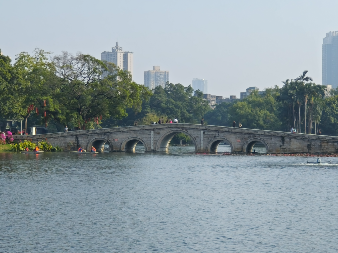 荔湾湖公园是集游览、文体、娱乐、休闲等功能于一体的综合性公园,也是荔湾区知名的地标景点之一。走进园内,绿树成荫、花草繁盛,三三两两的街坊围在一起,或下棋、或打球、或闲谈,享受着美好的时光。