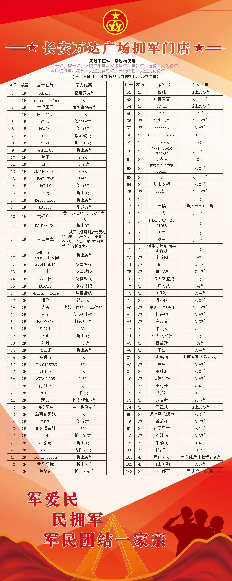 据了解,为深入贯彻拥军优属政策,长安镇创新举措,在长安万达广场首次设立双拥示范街,通过整合优质资源,携手103家商户,打造集购物、餐饮、娱乐、停车优惠等多元化服务于一体的拥军商圈,共同为军人军属、退役军人和优抚对象提供更加贴心优质的服务。