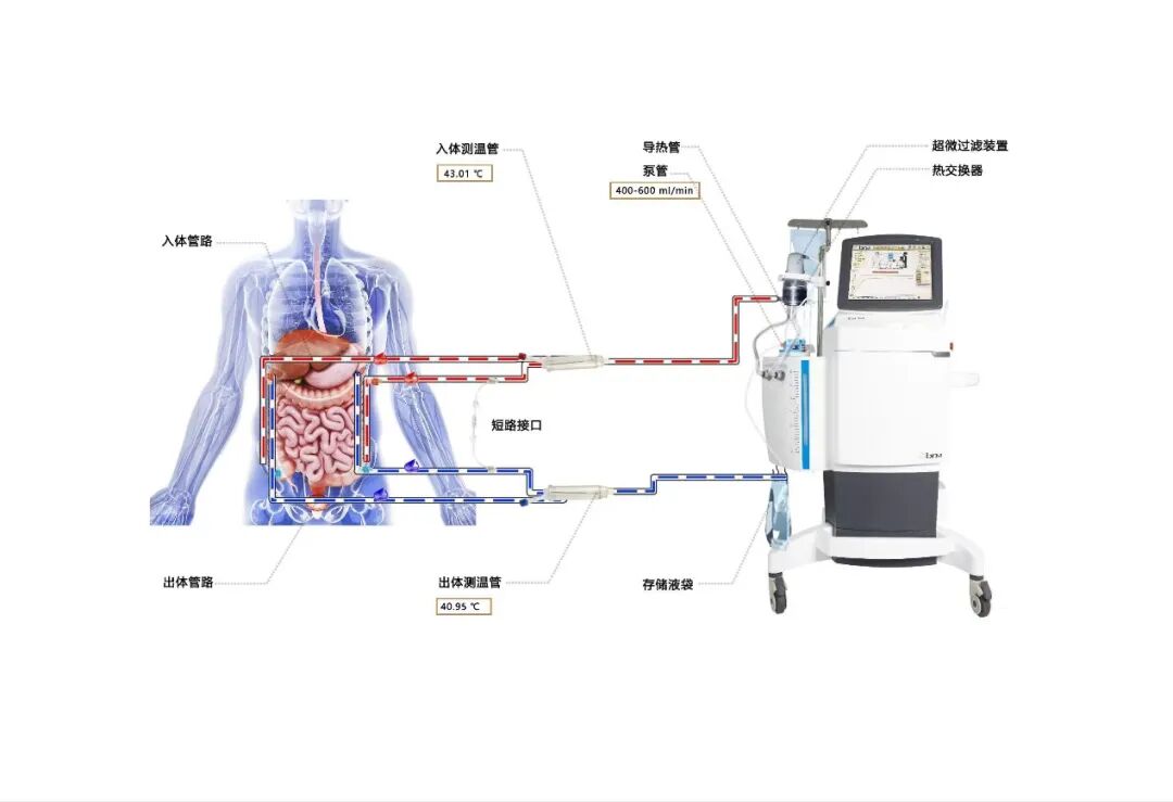 热灌注化疗是利用癌细胞无法在热环境下生存的特性,利用腹腔热灌注设备,直接把化疗药物灌输进入腹腔内,进行体内外循环的过程,可以精准杀灭腹腔内游离的癌细胞,并且保护正常的脏器组织不受伤害。