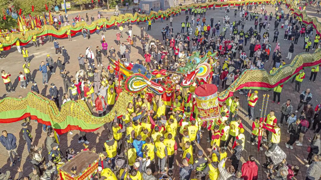 据悉,“龙乡游龙”是三江镇一项具有悠久历史的群众性民间艺术,也是市级非物质文化遗产。早在清代嘉庆年间,三江镇就开始兴起游龙活动,距今已近200年历史。每年正月初二、初四、十五元宵节,金龙都会在村内游弋,伴随着龙鼓队、护旗队、“虾兵蟹将”等巡游队伍,摆出各种队列造型,极具民俗特色……