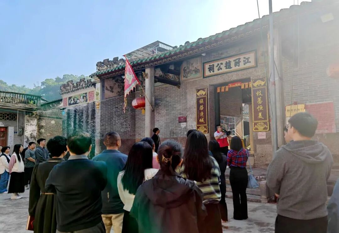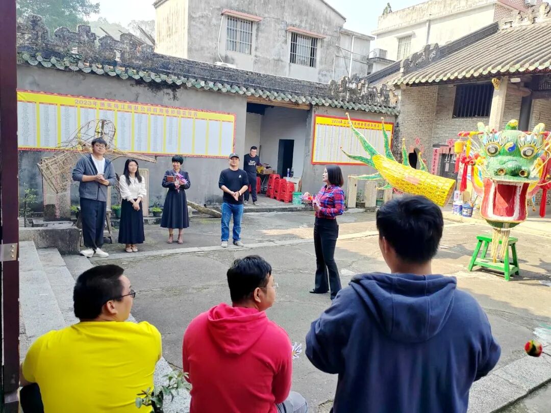 跟随着三江镇新江村恒美坊文化文艺志愿者赵健恩的脚步,学员们通过实地观察、观看宣传视频等方式,深入探索了恒美坊“龙宫”的历史传承和活化利用,追溯了金龙舞动背后的文化渊源,进一步感受到三江金龙文化中所蕴含的团结协助精神,以及正月十六“龙上山”所展现出来的勇攀高峰、不屈不挠的精神内涵。
