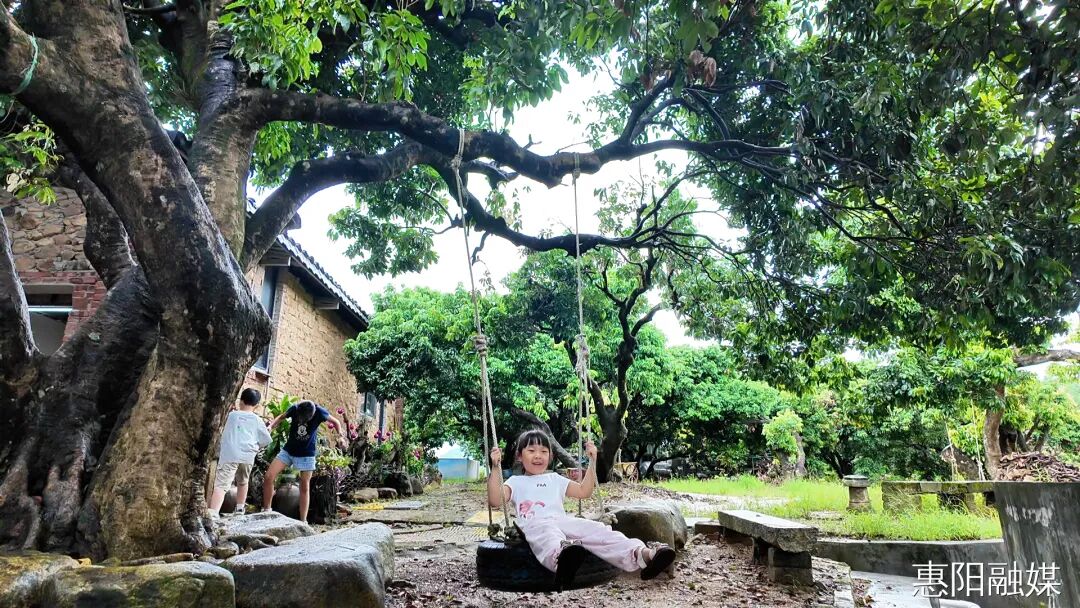 步入塘角村村民吴瑞娟的庭院,旧式木制脱谷机、旧式打糕机、钉耙改造而成的石凳……众多传统农耕器具仿佛打开了一条时空隧道,将人们带回到那个传统农耕的时代。同时,庭院各处精心布置的花卉景观、房屋墙面五彩斑斓的墙绘,赋予庭院勃勃的生机与艺术之美,令人陶醉。