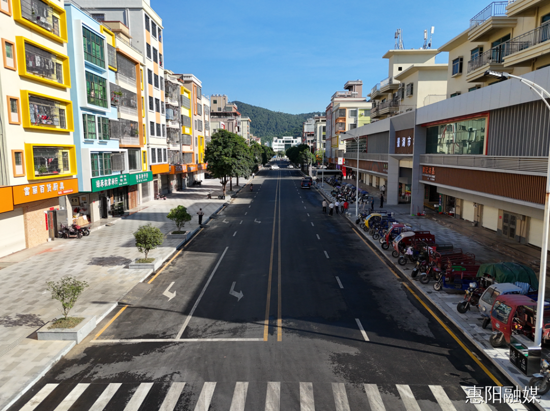 作为“七个一”项目的示范主街工程,经过升级改造,景湖一路重新铺设了双向四车道的沥青马路、花岗岩人行步道,并规划建设了停车场和非机动车停放区,与以前相比,街道变得更加整洁、宽阔、美丽。街道两旁房屋的外立面也完成了升级改造,“时尚风、工业风”的民房,以荔枝红为主色调装扮一新的景湖市场,整条街道展现了全新的面貌。
