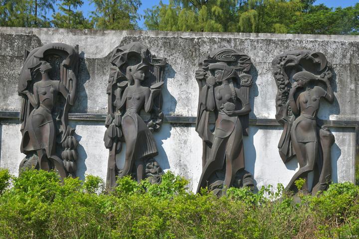 公园以其独特的雕塑作品而闻名,苏东坡、文天祥、孙中山、宋庆龄、周恩来、冼星海等人物雕像矗立园中,其中宋庆龄雕像高达24米,除此之外,还有其他艺术感染力很强的作品,如《重庆谈判》《新娘》《后羿射日》《大陆与海岛》《珠江母亲》等,这些雕塑不仅展示了艺术的美感,也承载着历史和文化的内涵。