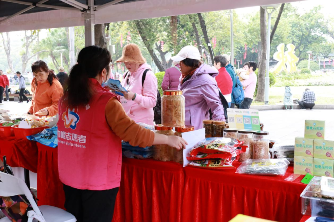 活动以“绿美广东展新颜,巾帼携手共振兴”为主题,搭建“巾帼助农园专区”“巾帼巧手专区”“巾帼油茶园专区”“巾帼服务专区”,展示展销来自广东韶关、河源、梅州等多地的巾帼油茶加工产品,以及来自新疆、甘肃、广东、广西、云南等省(自治区)的优质特色农产品,搭建农产品销售桥梁,促进农民增收致富,助力乡村振兴,也让游客在游玩欣赏荔湾湖美景的同时还能品尝、购买来自天南海北的特产。