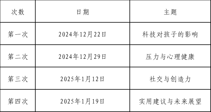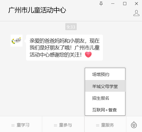 报名方式:关注“广州市儿童活动中心”公众号→童服务→羊城父母学堂,选择相应活动报名(报名时间:12月18日14:00—12月20日12:00,额满即止)