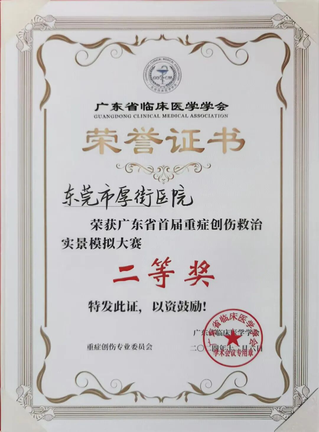 经过激烈角逐,我院获得实际病例模拟救治环节分数第一、综合得分第二,斩获比赛二等奖的佳绩。本次大赛是我省重症创伤救治领域的一场大“阅兵”,我院创伤中心斩获赛事二等奖的殊荣,充分展示了我院在创伤救援领域的专业实力和技术水平,以及极高的团队合作和组织协调能力,是对我院创伤应急救治能力和水平的一次全面检阅和提升。