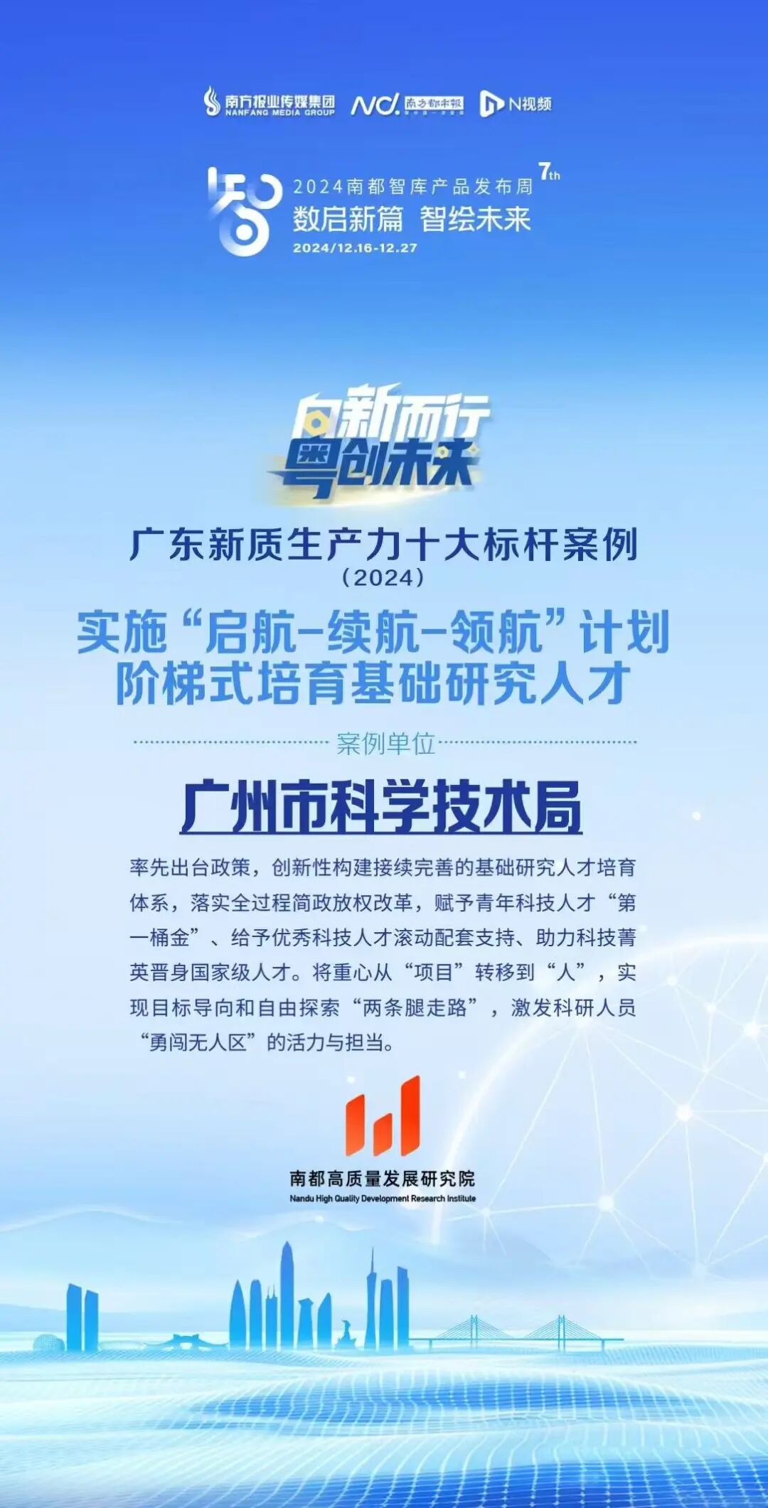 该方案指出,广州率先构建以年龄层次、研究基础、资助额度等多维复合、层次分明、梯度合理的“启航-续航-领航”阶梯支持体系。其中,即将实施的青年博士“启航”计划,将继续支持35岁及以下的青年博士开展5万元/项的自由探索研究;优秀博士“续航”计划主要支持已获得“第一桶金”且成功取得国家自然科学基金立项资助的优秀博士,将给予10万元/项的滚动配套支持项目,该计划支持40岁及以下青年人才;科技菁英“领航”计划,主要支持42岁及以下的科技菁英冲击国家“杰青”“优青”等国家级人才项目。