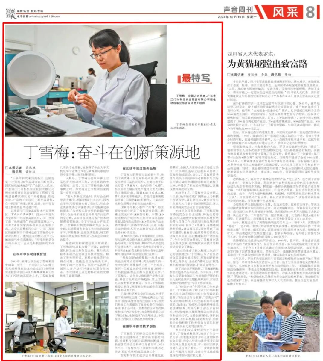 丁雪梅:全国人大代表、广东省江门市科恒实业股份有限公司锂电材料事业部资深研发工程师