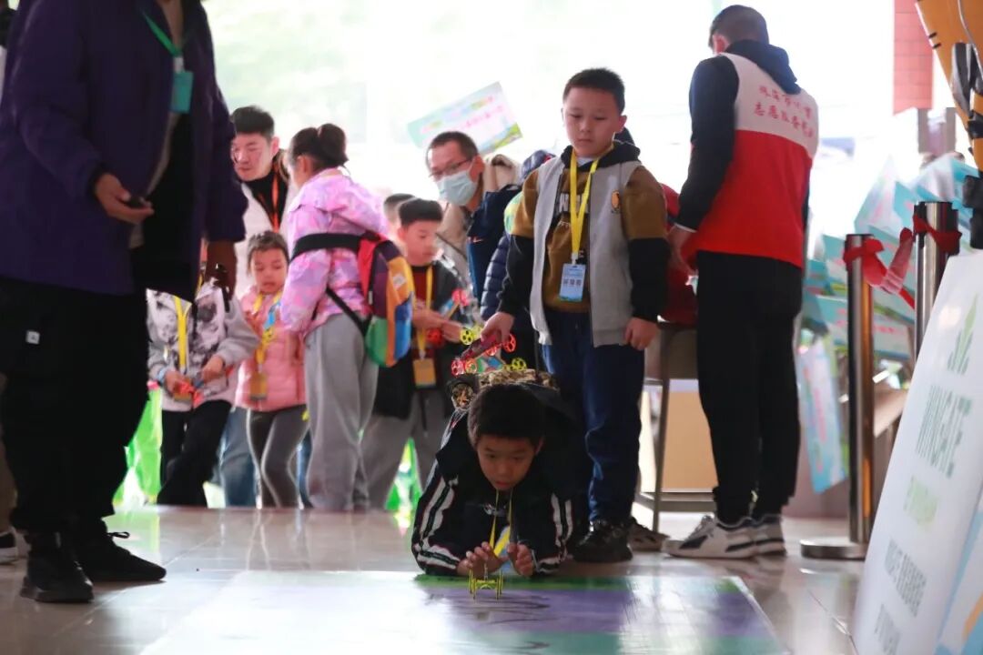 橡筋动力拼装定点赛,全方位展示了选手们的手脑协调配合能力。选手们在规定时间内迅速拼装出动力小车,扭动橡筋获得动力、放下定点、瞄准出发,平稳地停靠在100分的圈内是“小马号”选手的目标。