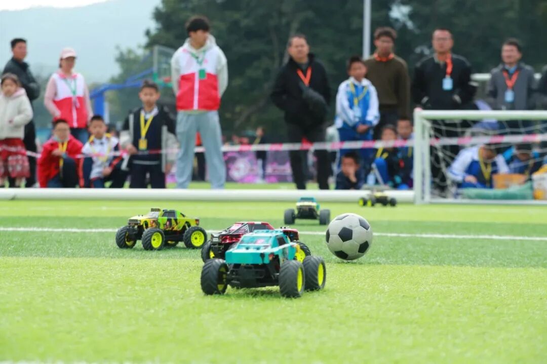 3v3 遥控车足球赛作为本次赛事的一大亮点之一,为观众们带来了一场速度与激情的盛宴。一辆辆小巧玲珑的遥控车变成绿茵场上的足球健将,选手们巧妙地运用遥控车的速度和灵活性,通过精准的传球和突破,不断向对方球门发起冲击。