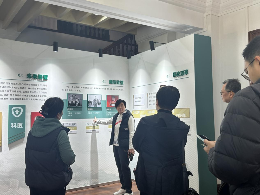 交流团参访了广东省二沙体育训练中心广东体育展馆及相关训练设施,详细深入了解二沙中心作为我省卓越竞技体育人才培养基地和奥运冠军的摇篮所积淀的丰厚历史与辉煌成就。在二沙技蹦中心,聆听世界冠军李丹、黄艳菲及金牌教练的运动生涯和训练经历分享,领会他们在竞技体育中的奋斗历程和训练心路,亲身感受广东专业运动员们刻苦训练、努力拼搏的奋斗历程以及为国争光的坚定信念。