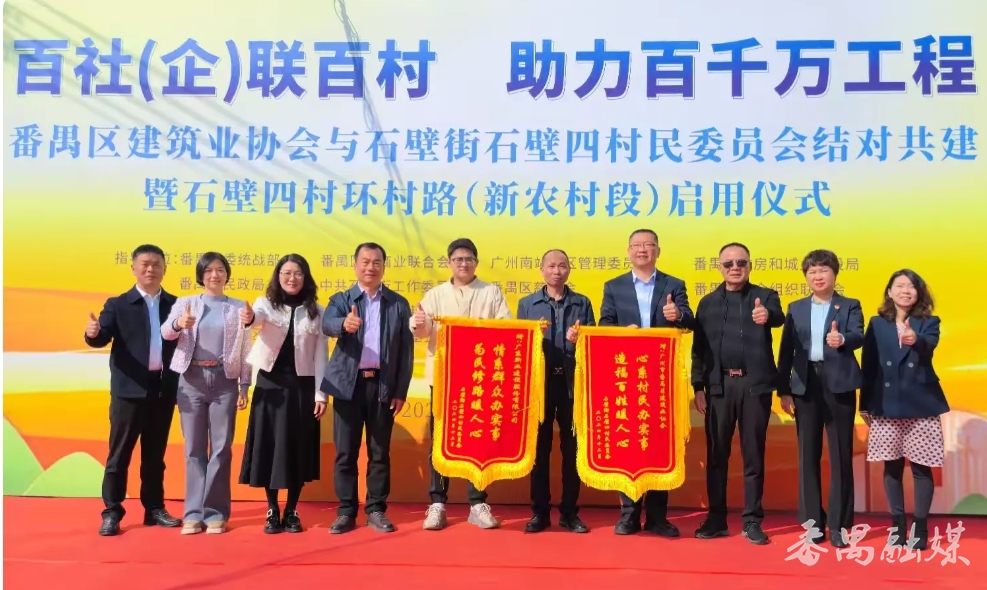 近日,番禺区石壁街石壁四村举行“百社(企)联百村——助力‘百千万工程’”结对共建活动,正式启用环村路(新农村段),标志着该村乡村振兴工作迈上新台阶。此次活动由区委统战部、区工商联等多部门联合推动,吸引了区建筑业协会、区社联会等众多协会及企业代表参与,旨在凝聚社会力量,促进区域协调发展。