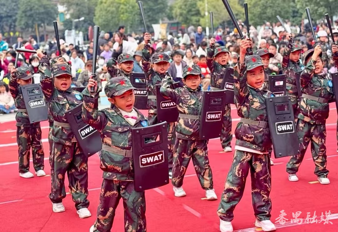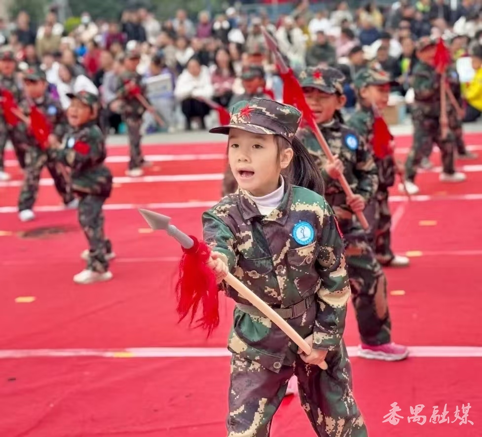 国防展示环节精彩纷呈。家长方阵的表演令人眼前一亮。幼儿们先后进行了红缨枪、大刀表演、匕首操、盾牌术等精彩的军事特色科目展示。