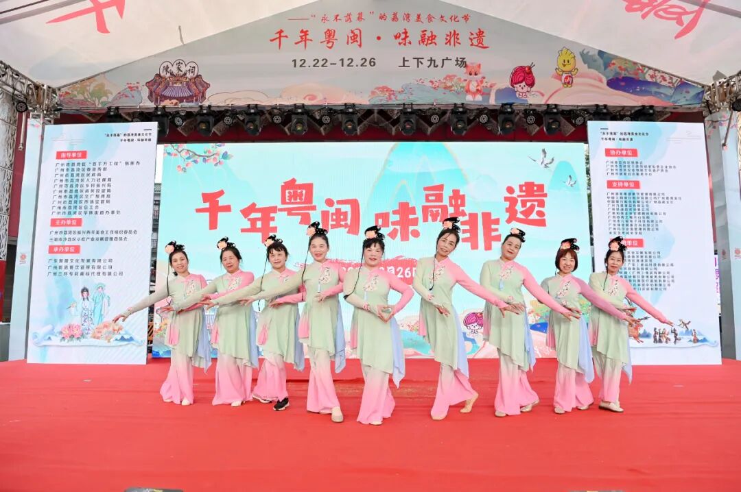 5天美食文化节期间,现场每天固定时间段轮番上演各类歌舞、管乐、走秀、汉服巡游、杂技魔术、粤剧名篇等节目,更有科普互动、集章打卡等趣味活动,为食客打造一场“视觉+听觉+味觉+体验”的多重盛宴。