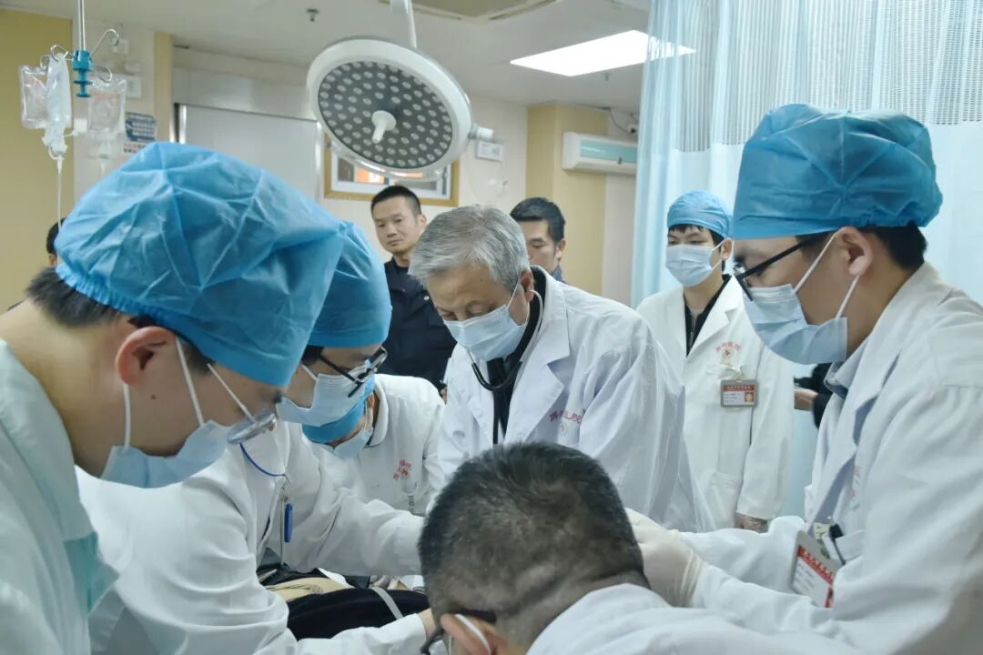 正当伤者转运至抢救室途中,等候多时的专家团队立即进行全面查体,并陪同伤者通过绿色通道进行急诊检查。恰逢解放军总医院第三医学中心原急诊科主任、博士生导师王立祥教授在厚街医院参加急诊科指导工作,王立祥当即参与伤者检查、指导急救。
