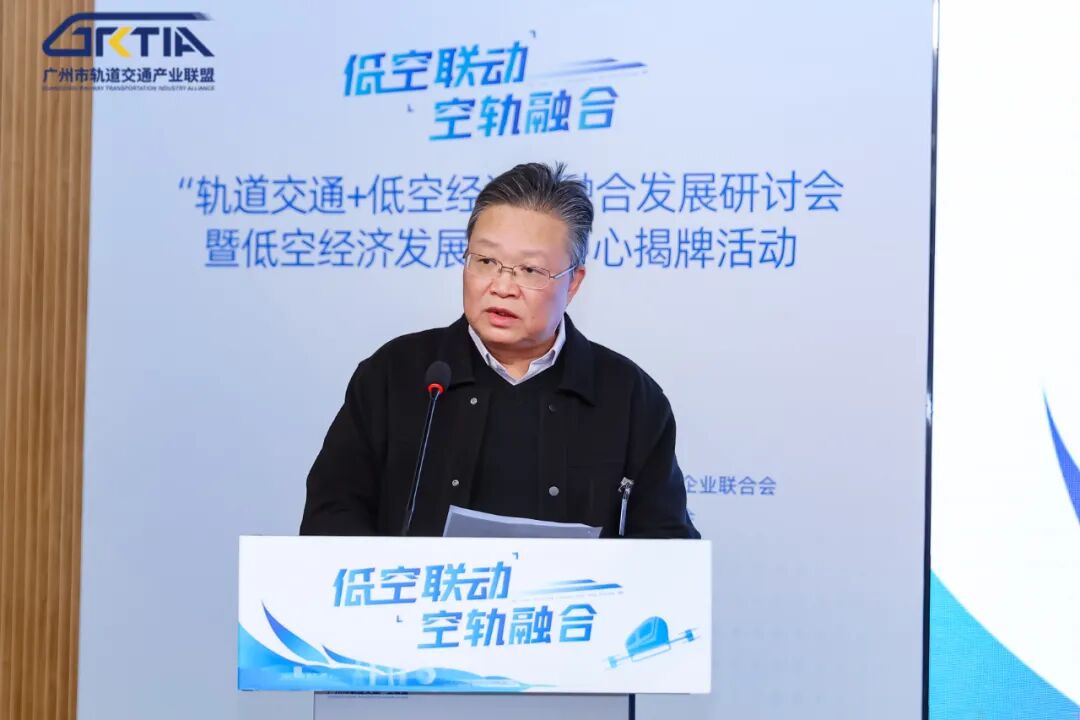 2024年12月10日下午,由广州市发展和改革委员会指导,广州市轨道交通产业联盟主办,广州市碳达峰碳中和产业联盟企业联合会、广州市轨道交通产业人才联合会协办的“轨道交通+低空经济”融合发展研讨会暨低空经济发展研究中心揭牌活动在广州大湾区轨道交通产业发展中心举行。广州市政府副秘书长迟军出席本次活动。