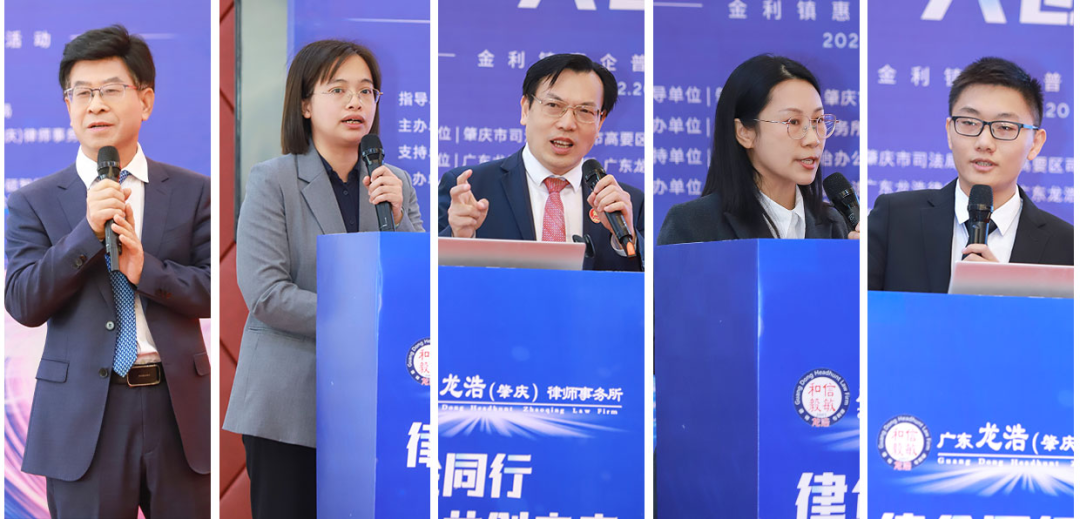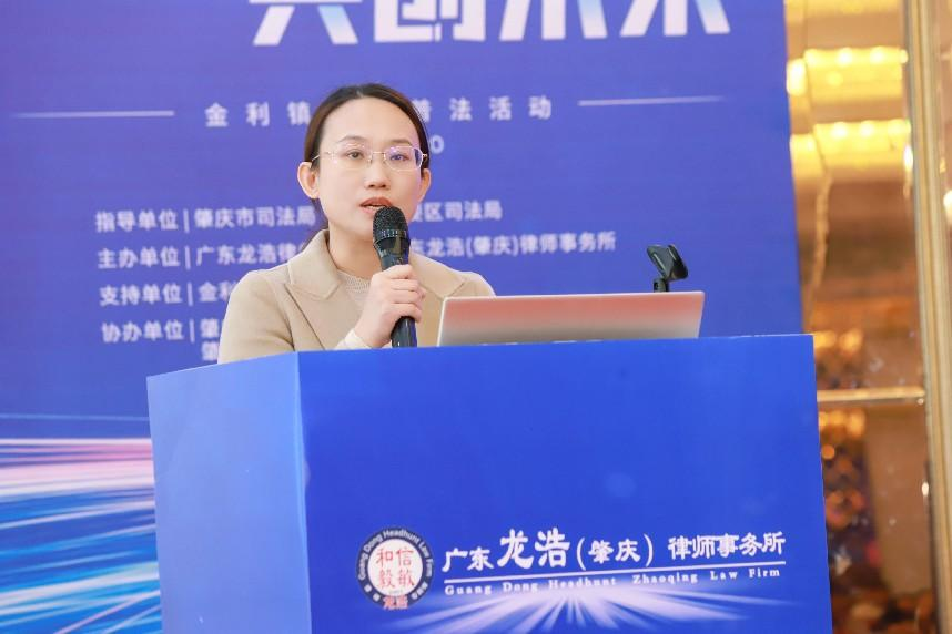 李慧婷副书记致辞表示,在当前经济发展形势下,民营企业既面临着重重挑战,也迎来了诸多机遇,法治作为市场经济的稳固基石,是企业实现稳健发展的关键保障。律师作为法治建设的重要力量之一,承担着维护法律尊严、保障公民权益以及促进社会公正的重要职责。在与企业合作的过程中,律师们为企业提供了专业的法律服务,防范法律风险、化解矛盾纠纷,为企业的健康发展保驾护航。对于广东龙浩(肇庆)律师事务所积极投身于肇庆市的法治建设,全力支持肇庆市经济社会发展,并为金利镇的知识产权和法治建设领域积极发挥专业优势,帮助企业防范经营风险,推动企业健康发展的行动,表示由衷的欢迎与赞赏。