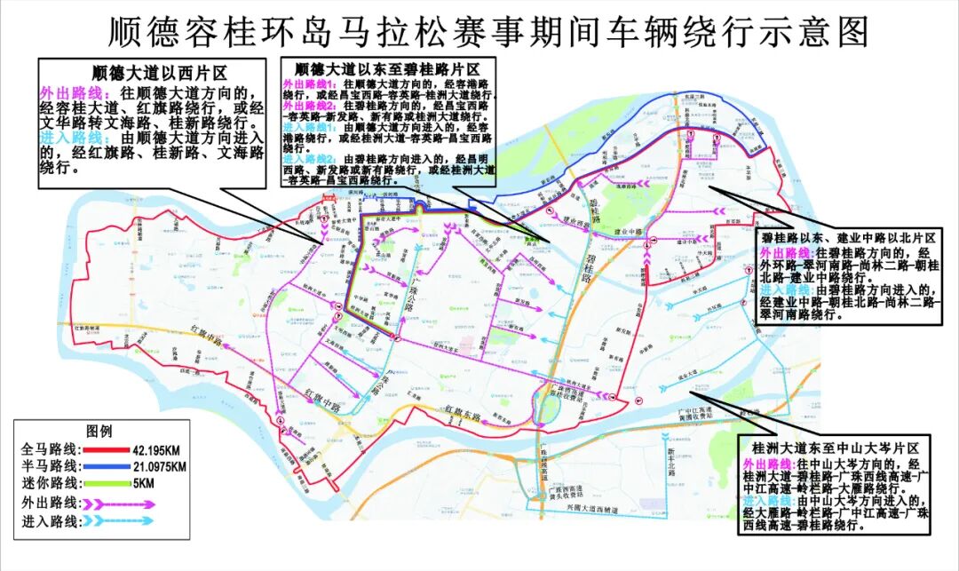 ②由顺德大道方向进入的车辆,请经红旗路、桂新路、文海路绕行。