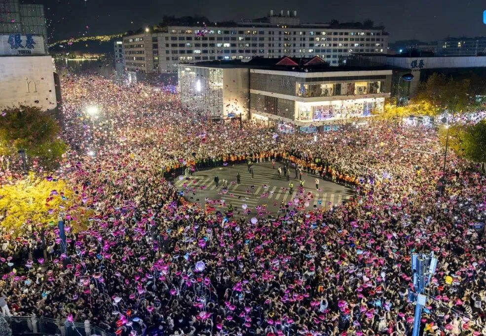 今年杭州的跨年夜,湖滨步行街峰值人流近9万,累计人流超过27万。