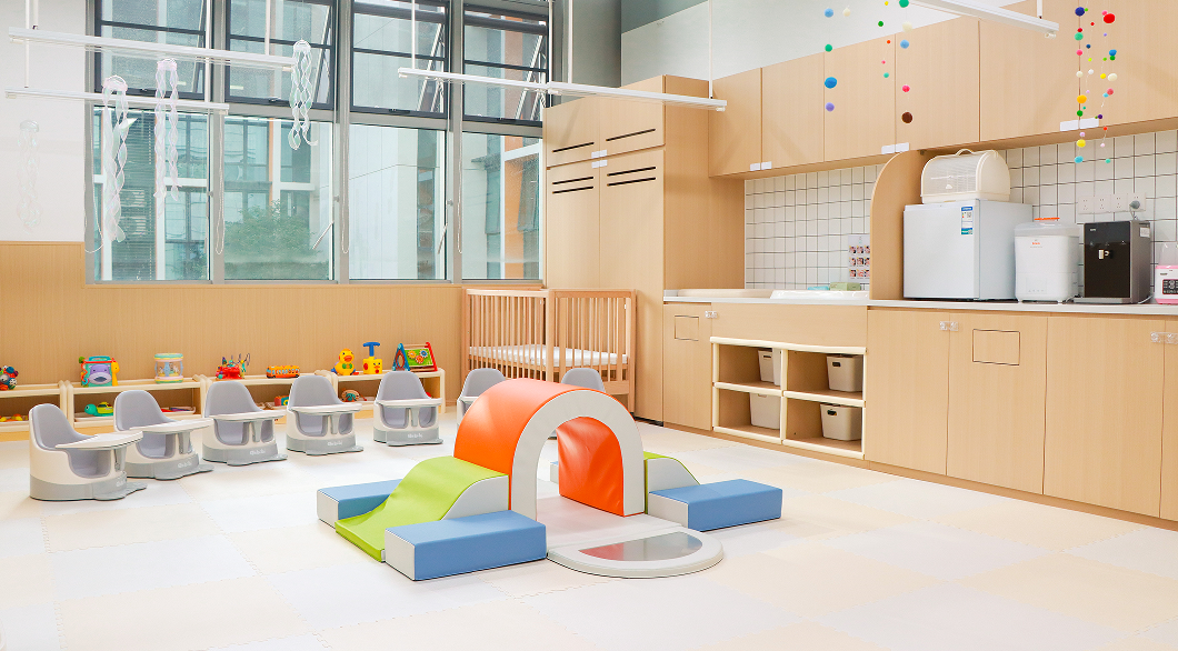 宝安区中医院普惠性托育园由宝安中医院(集团)与国企托育品牌深业幸福家联合开办,共有44个托位,可为0-3岁的宝宝提供个性化托育服务。