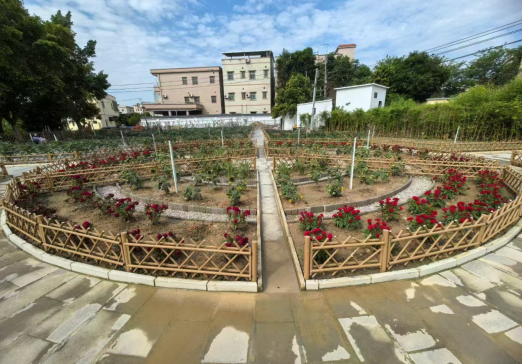“岭南绿美第一村”小菜园由花山镇政府指导,广东省农业科学研究所与花都区花山镇经济发展总公司携手共建,一期规划面积1600平方米,规划有蔬菜瓜果区、粮食作物区、调味香料区、果树区、花卉区5大分区,引进适合示范的蔬菜、粮食、花卉等作物30多个品种。小菜园融合红色文化底蕴及绿美建设风潮,打造成为集“红色教育、古色乡村、绿美风光、产业发展”为一体的特色绿美红色乡村生态文化宣传的新窗口,在改善村民生活环境的同时,也为乡村增添美丽一景。
