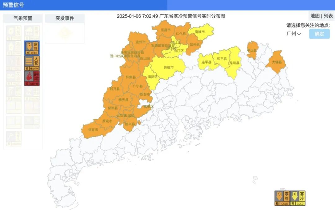 今早7时许,广东多地已经发布寒冷橙色预警,大家可以逐渐感受到冷空气的走近。昼夜温差大,注意保暖,适时增添衣物。