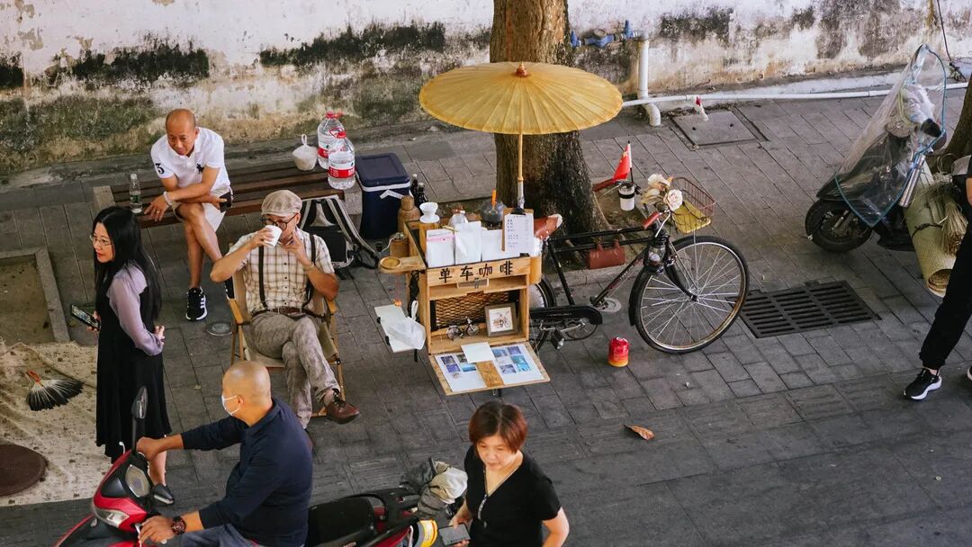 单车咖啡。陈文 摄