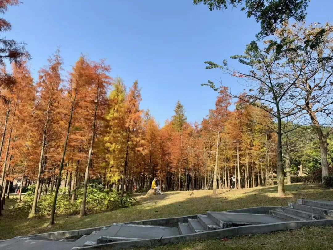 近日,台山市石化公园的落羽杉林迎来了最佳观赏期,这片独特的景观吸引了众多市民和游客前来赏景拍照。