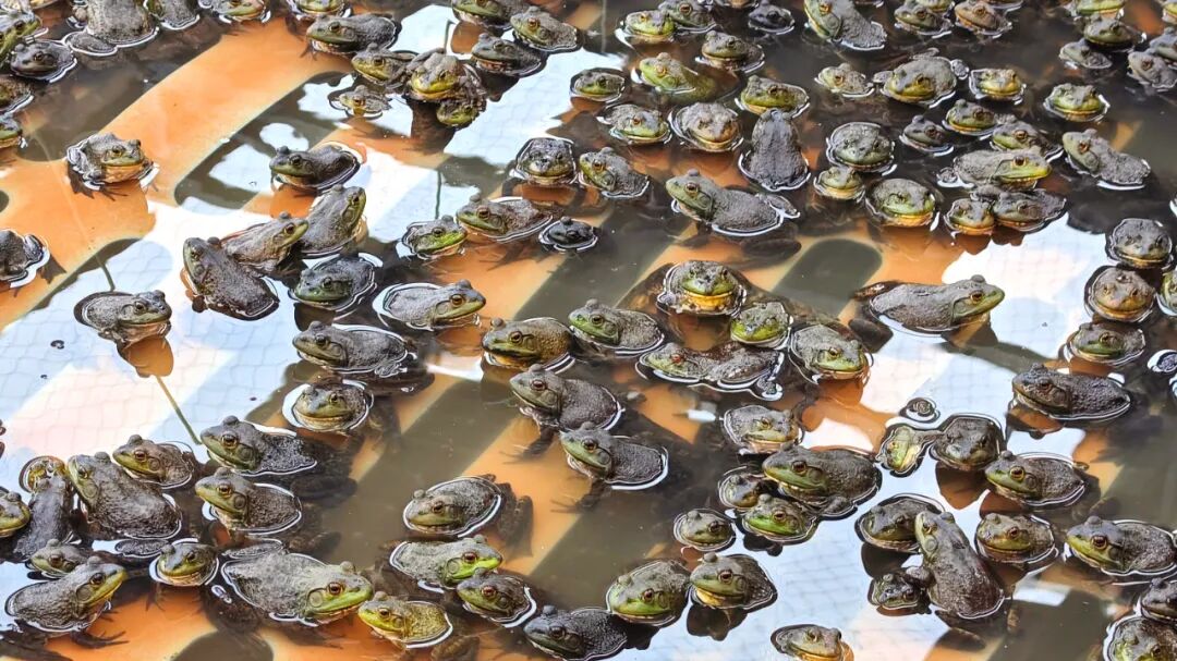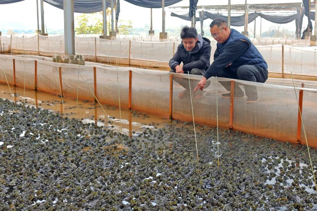 在华石镇寨脚村委尖岗咀的牛蛙养殖基地里,覆盖着绿色纱网的水池如棋盘格般整齐排列,饲养员正在给牛蛙定时投食。牛蛙有的从水里露出半个脑袋,有的则闻声而跃,养殖池里不时溅出阵阵水花。据养殖企业罗定市润达生态水产有限公司相关负责人介绍,整个基地约130亩,因地制宜建设了光伏蛙场、果树种植场、鱼苗养殖场等,把养殖和种植有机结合起来,实现循环种养的同时,有效规避市场风险。“目前我们与国内多家餐饮企业签订长期的供应合同,产品远销海内外,产值近4000万元。”该基地负责人说。