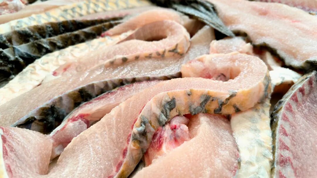 在都杨镇湾边村,渔民一大早就开始制作鱼干——放血、剖割,将草鱼快刀切成手臂长的“鱼条”,然后用盐或秘制酱料腌制,并在日光下整齐悬挂晾晒。在江风吹拂和阳光曝晒下,鱼肉的水分逐渐蒸发,油脂被牢牢锁住。站在旁边,都能闻见浓浓的鱼香味,香味中溢着收获的喜悦。