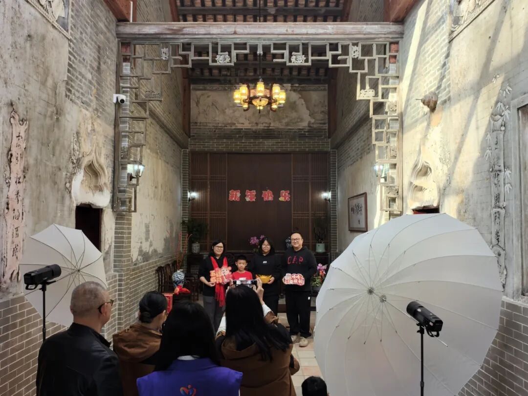 在东莞樟木头“中国作家第一村”墨隐书房,拍摄现场忙碌而有序。古朴典雅的老宅装饰得温馨喜庆,居民们摆出各种动作,或携手并肩,或欢声笑语,或深情凝望,摄影师用心捕捉每一个幸福的瞬间,伴随着快门闪动,一张张幸福的笑脸被定格下来。