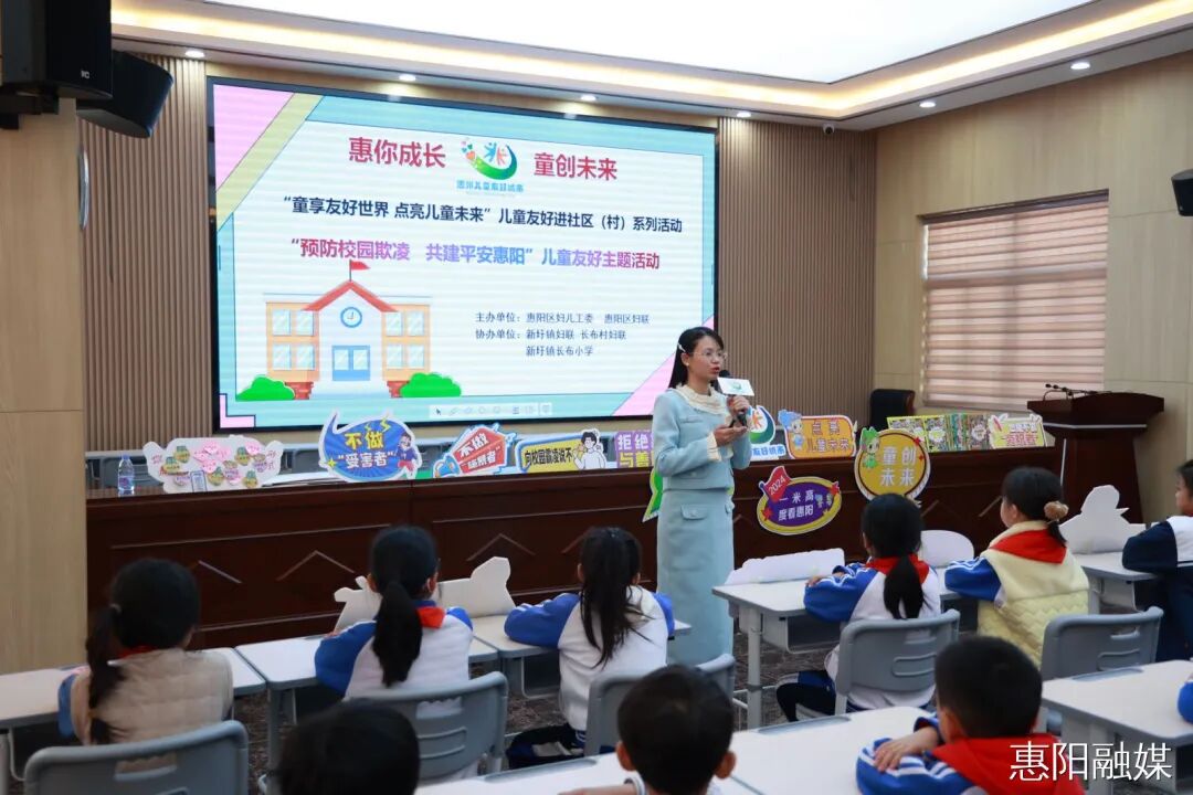 “同学们,遇到校园欺凌,不要当冷漠的旁观者,不要当沉默的受害者。要冷静应对,勇敢地对校园欺凌说‘不’”。日前,由惠阳区妇儿工委、惠阳区妇联主办的“预防校园欺凌 共建平安惠阳”儿童友好主题活动,在新圩镇长布小学举行。