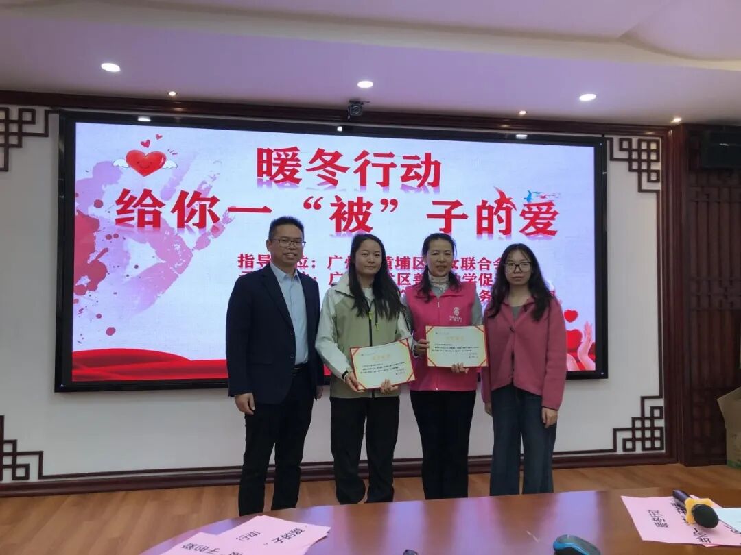 近日,黄埔区妇联携手广州开发区善德助学促进会、广州志远企业管理服务有限公司,在广州石化中学举办“暖冬行动 给你一‘被’子的爱”爱心捐赠活动。黄埔区妇联党组书记、主席王晓虹,广州石化中学书记李军广,广州开发区善德助学促进会会长、党支部书记、妇联主席夏晓英、广州志远企业管理服务有限公司副总经理李西西及师生代表、志愿者代表参加活动。