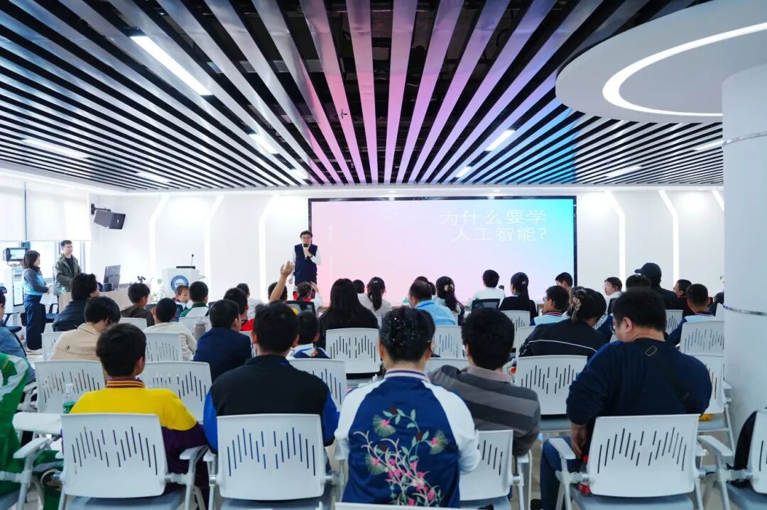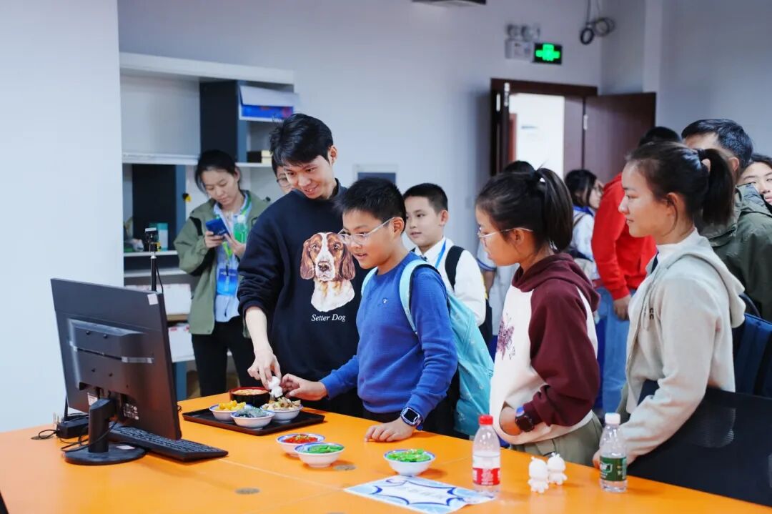 随后,人工智能实验室工作人员带来了更为直观的互动体验。他们演示了鱼类行为识别与分析、无人食堂智能体验、生成式AI-3D打印、无人商店智能体验、六足机器人实验及智能家居组件应用等6个多功能实验区。在互动环节,学生们亲自操作了这些先进的设备,感受到了科技带来的乐趣与魅力。