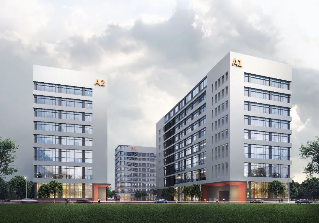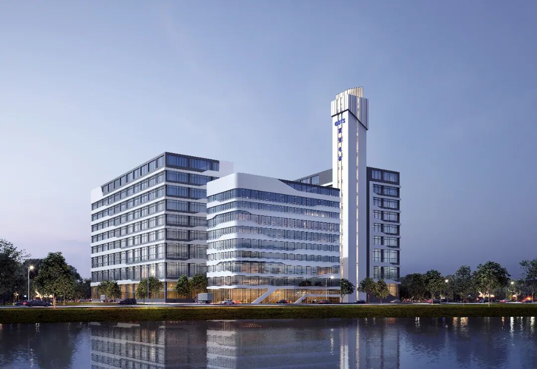 项目外观设计简洁、大气,符合现代工业建筑风格,辅以大开玻璃窗户,彰显视觉上的开放空间,建筑立面布局规整,运用线条与几何形状增加动感,整体色调以浅灰为主,配以少量暖色灯光,使建筑更加鲜明突出。