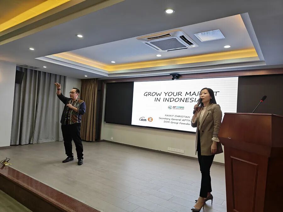 交流会上,印尼电子信息行业协会(APTIKNAS)秘书长Fanky Christian,大买家Bolde Indonesia总经理Alex Sutono分别以“印尼电子产品的消费环境,行业发展现状及监管要点”“如何在印尼开展业务,与买家合作以及分销策略”为主题,分享了印尼电子消费品市场的发展情况及政策要点;广东潮域展览有限公司印尼分公司总经理Jonathan、市场开发负责人Dewi、高级项目总监Chris则从实操层面为广大企业介绍了如何更快更好地融入和开拓印尼当地市场的策略。