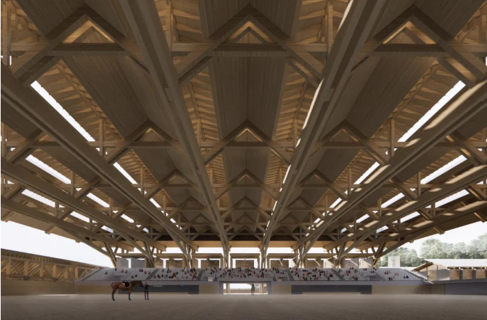 光明国际马术中心位于深圳市光明区光明街道,为第十五届全国运动会马术项目盛装舞步与障碍赛主场馆,也是第十五届全运会深圳赛区唯一新建场馆。项目用地面积50018㎡,总建筑面积69000㎡,项目功能包括主赛场、室内训练馆、室外训练场、赛事用房及马匹生活用房等,赛时可容纳200匹马匹。